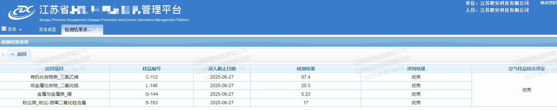 熱烈祝賀!江蘇職安科技全優通過2025年度實驗室比對